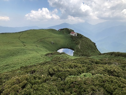 食事中、ドでかいザックを背負った学生さん達が剣山側からやって来た! 身体の四倍くらいありそう (◎◎);