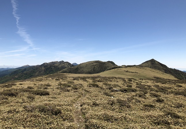 牛ノ背から見る天狗塚、西熊山、三嶺方面