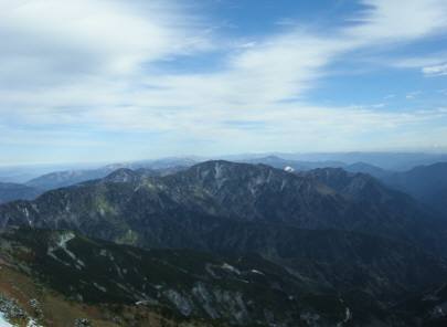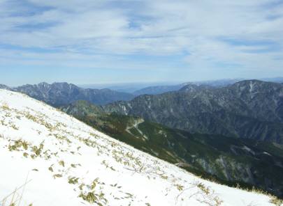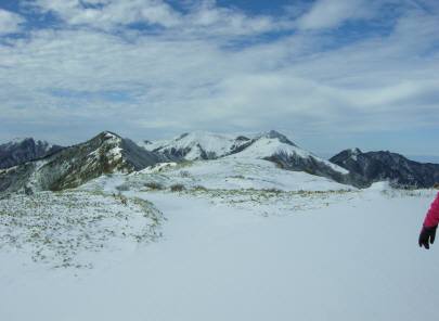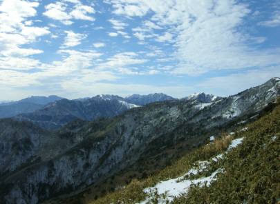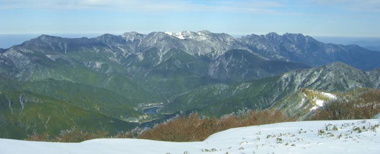 頂上の東端から見た 赤石山系(左写)と大座礼山'(右写)