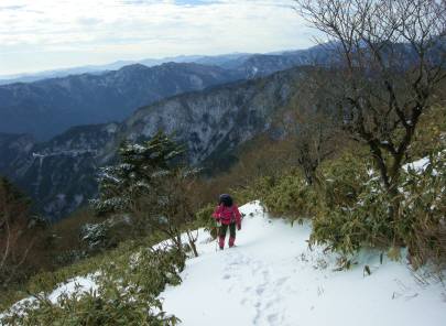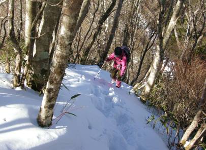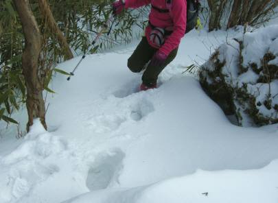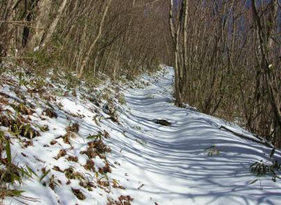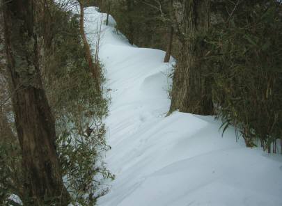 この尾根道は、愛用のスーパーカンジキを持ってくれば良かったかな〜と思いました