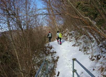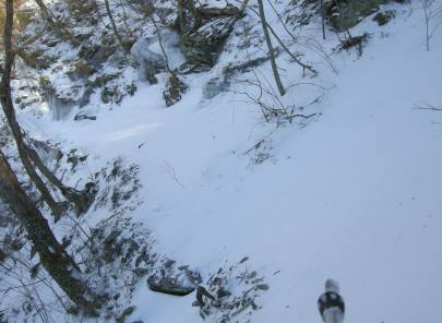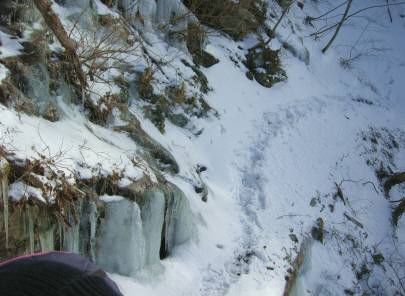 階段の下が凍っている第二の難関へ突入! ここはアイゼンがよく効いたので大丈夫