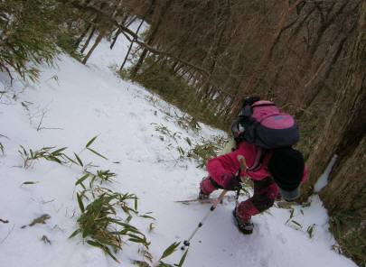 ですが、前を行く女の子は登山靴のままなので滑りまくり (TT);