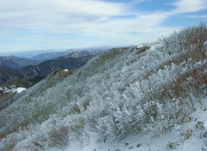 北斜面は霧氷がビ〜シリ 西の岩場へ向かいます