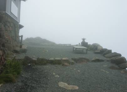足がプルプルする〜 (++); と言いながら階段を下る 下山時は殆どがガスの中でしたね〜