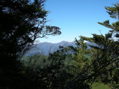 少し先の展望場より、右写は祝子(ほうり)川方向、その川を北へ行けば祝子ダムを過ぎて大崩山登山口へ