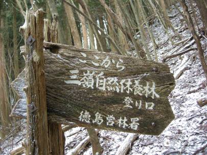 自然林に入ったあたりから急激に気温が下がる (++); 雪も降ってきた!