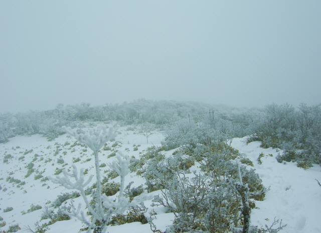 霧氷がビィ〜シリ! 剣山の方向、真っ白で山は見えません