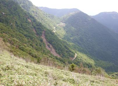 後方の次郎笈↑すぐ下にはスーパー林道が見えていますが 只今、通行禁止らしいです ・・ 林道から登ると近いですね(・・);