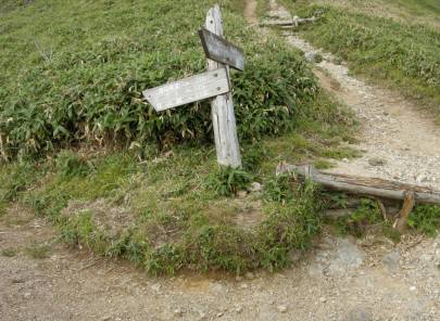 美味しい水を飲んで テコテコ歩くと すぐに分岐です ( 左に次郎笈 ・ 右に三嶺 )