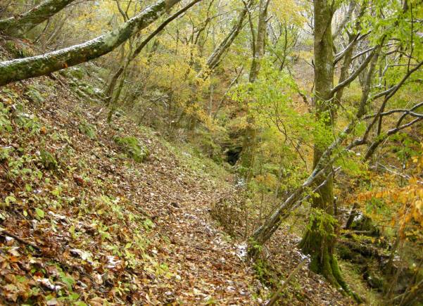 「真名井の滝」 までは秋色の 鮮やかな落ち葉の じゅうたんでしたが ・・