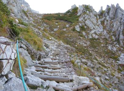 左は巻き道、直道で中岳へ