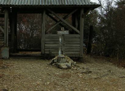 アスファルトの道 ( ふるさと林道 ) をテクテクと歩けば 右下に避難小屋を発見 !! ちょっと寄り道