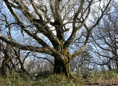 笹の中をやっとこさ進むと ・・ すごい枝振りの木を発見 !!